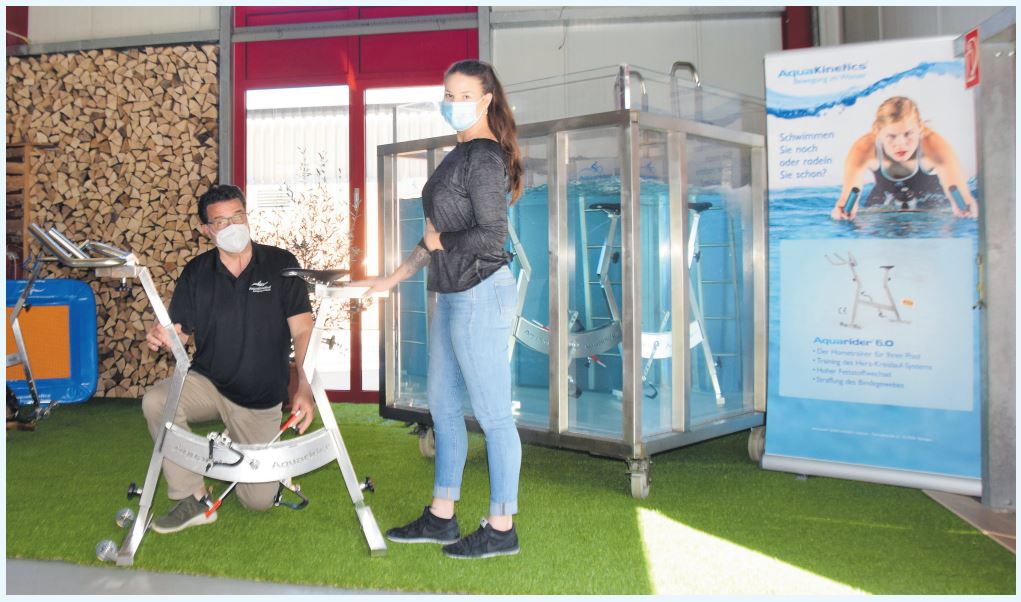Teningen-Nimburg. Die Pandemie ist für die Unternehmen eine große Herausforderung. Wenn die Einnahmen in der CoronaKrise wegbrechen, dann sind kreative und innovative Ideen gefragt. Auch Markus Scherer, Chef der Firma „AquaKinetics“ und Hersteller des weltweit einzigartigen Unterwasser-Ergometers „Aquarider“, geht neue Wege, um die schwierige Zeit überbrücken zu können. So wird der Aquarider-Werksverkauf künftig zum Erlebnis für die ganze Familie.